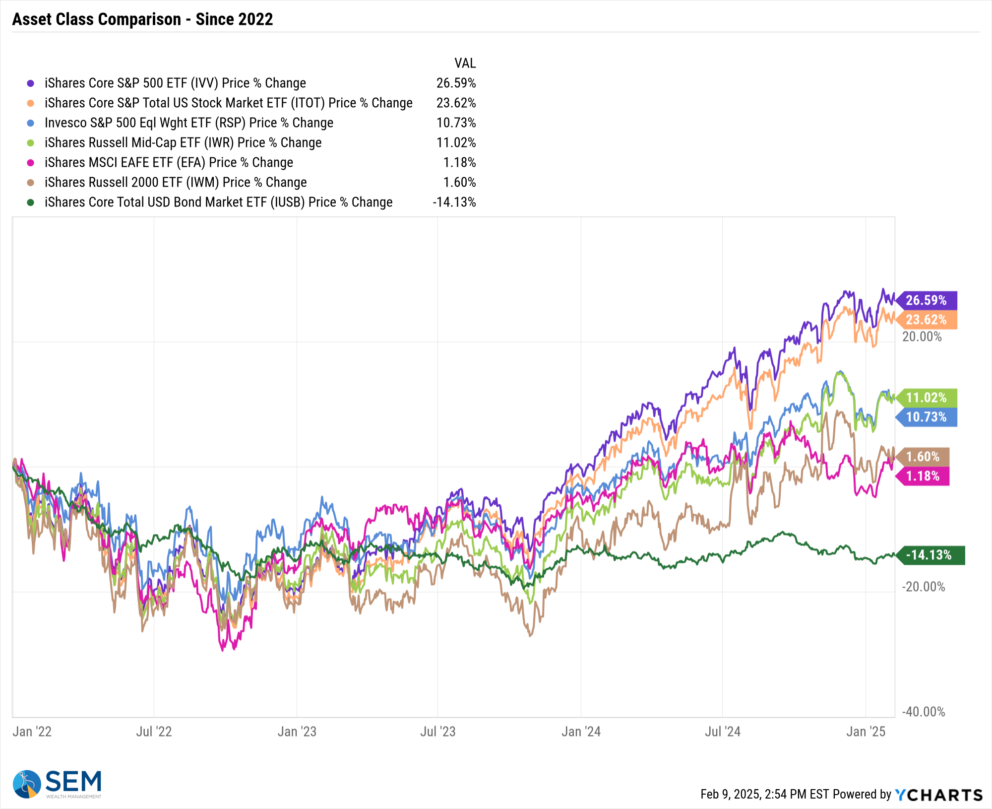 As would be expected based on the political divide in our country, the first 6 weeks of the year have been a roller coaster. With over 3000 accounts spread across the country we have seen all sorts of predictions on what Trump 2.0 will mean for the economy, the markets, and life in general. I'm not saying it is wrong to have these types of emotional reactions, but it is important to try to take a step back and look at things as objectively as possible.