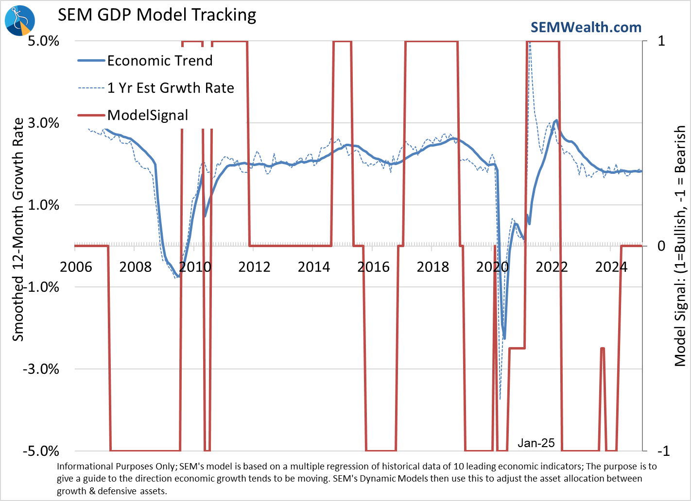 For the 9th consecutive month, our quantitative economic model remains "neutral". Various indicators have jumped around on our dashboard, but everything is still a mixed bag – not too hot and not too cold.