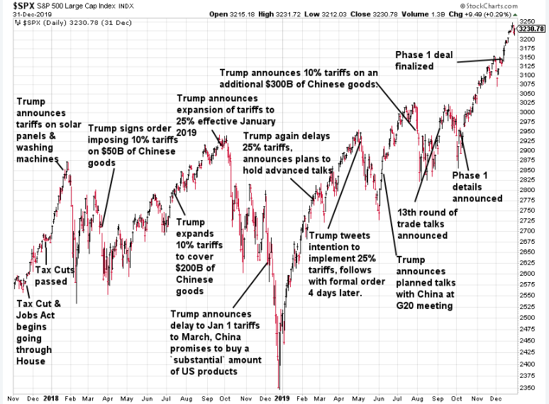 If you've read the blog at all the past month or two, you're probably tired of seeing this chart, but I keep posting it as a reminder. Trade War 1.0 was not fun if you were watching the markets every day (or week). The "process" of restructuring trade agreements was done in the public, often times over Twitter. The President would then wait for the reaction of the market and our trading partners and adjust his strategy.