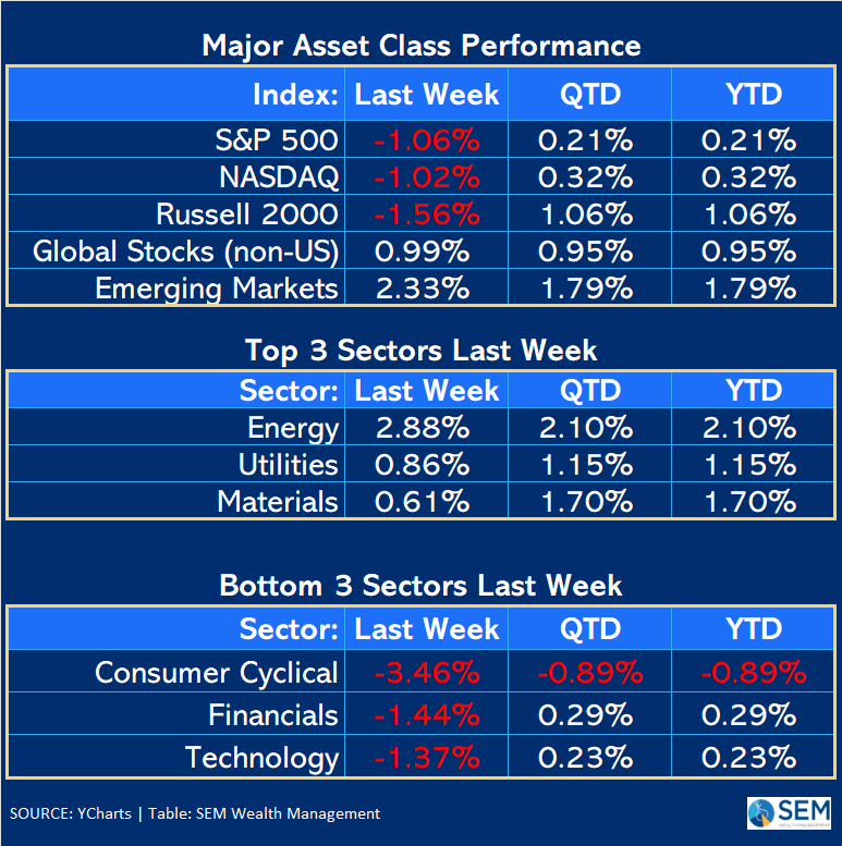 We know that analysts almost always predict positive returns for stocks and were dreadfully wrong ahead of big down years (Oppenheimer predicted a 15% gain in 2022 – a year the market lost 18%). The big question and something we'll be watching in the blog this week is "what can go wrong". Here is my list: