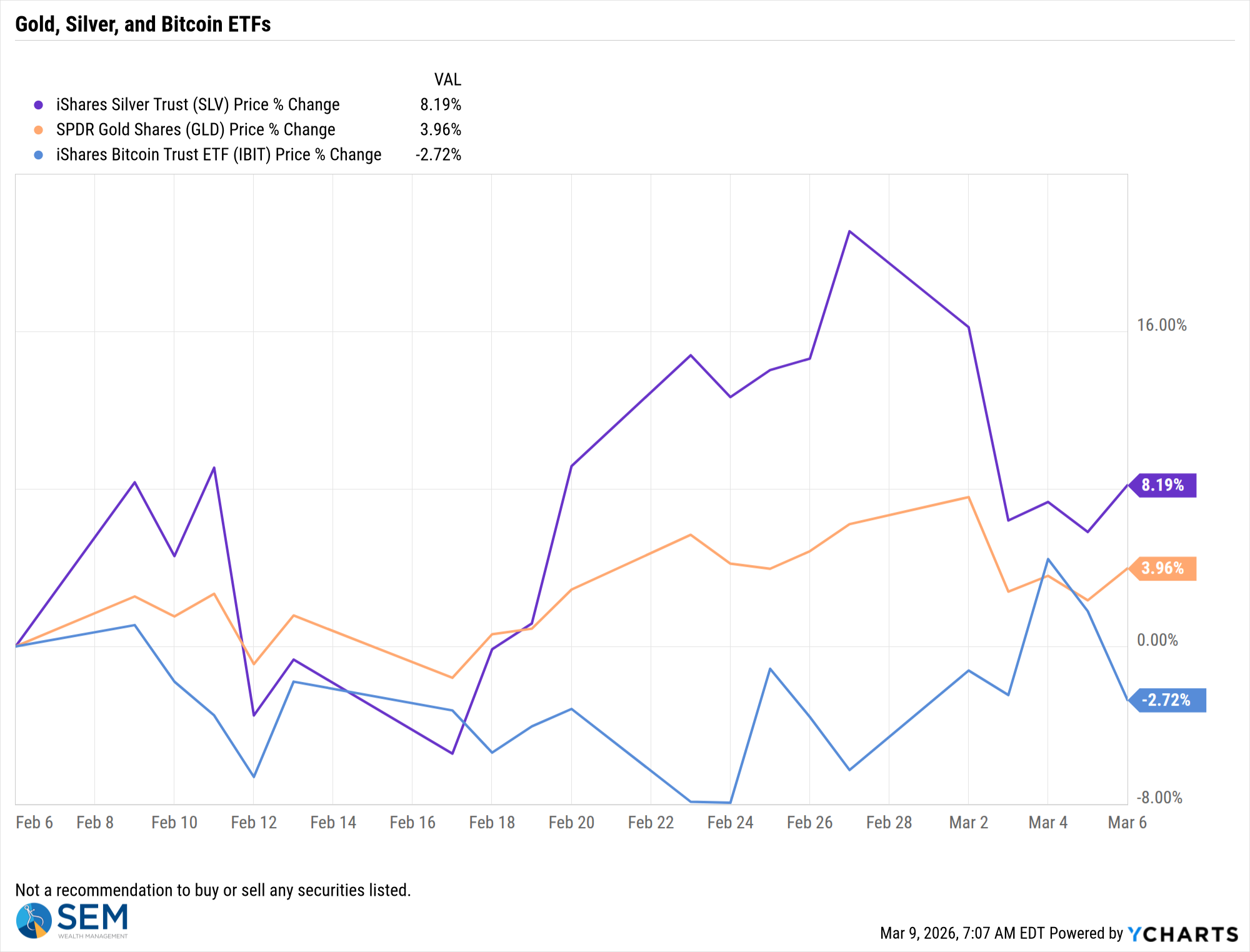 Gold, Silver, and Bitcoin continued to march to their own drummer. In "normal" times, Gold should have had a strong week, but instead lost ground last week.