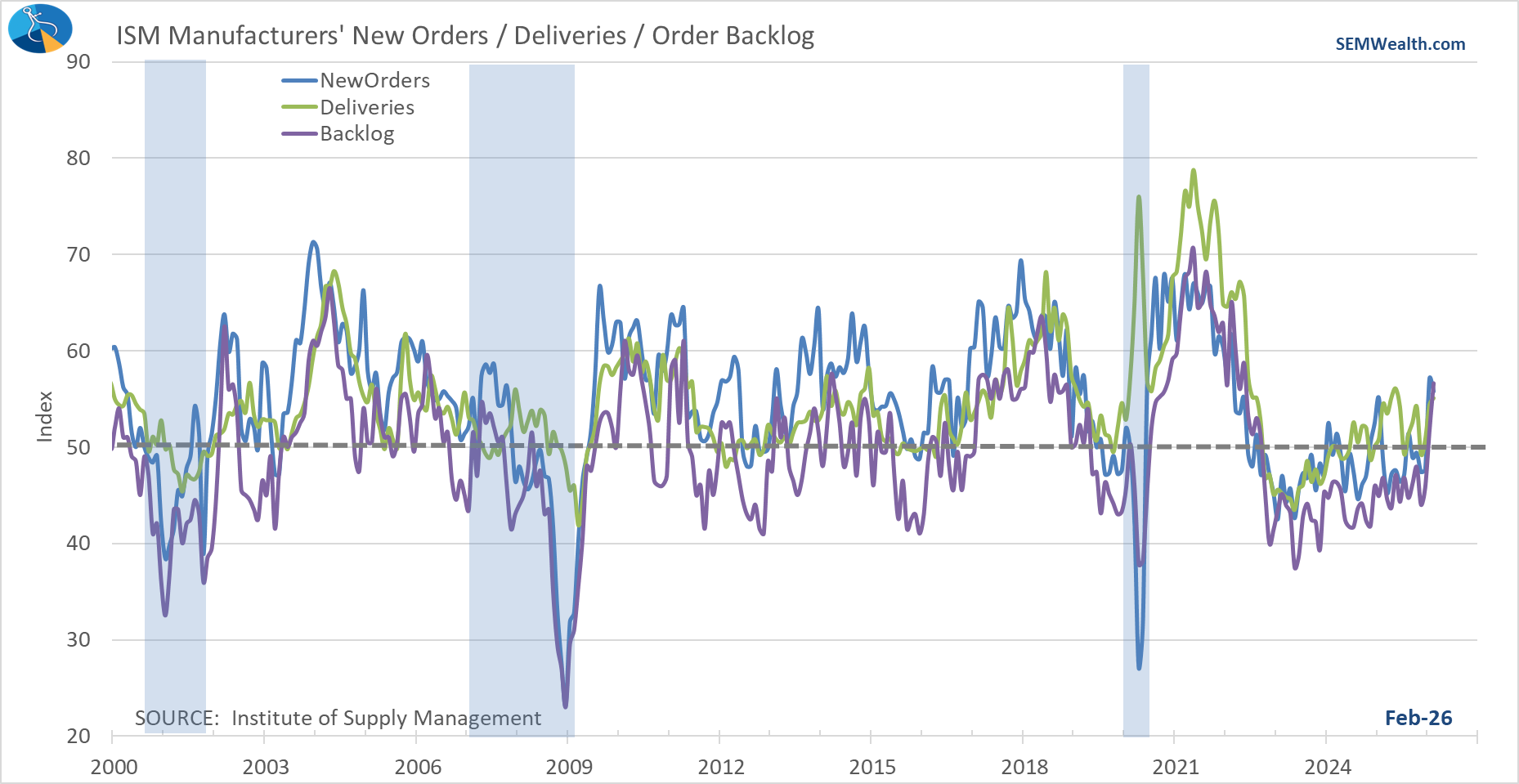 The February Manufacturing Index also showed the leading indicators all moving higher.