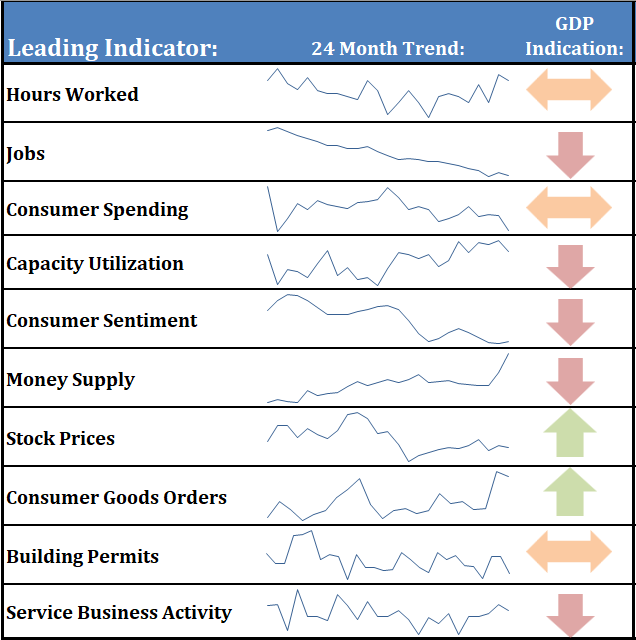 Combined with all of our other leading indicators I would summarize the economy as "stable". It does appear to be weakening, with more of our indicators negative than positive.