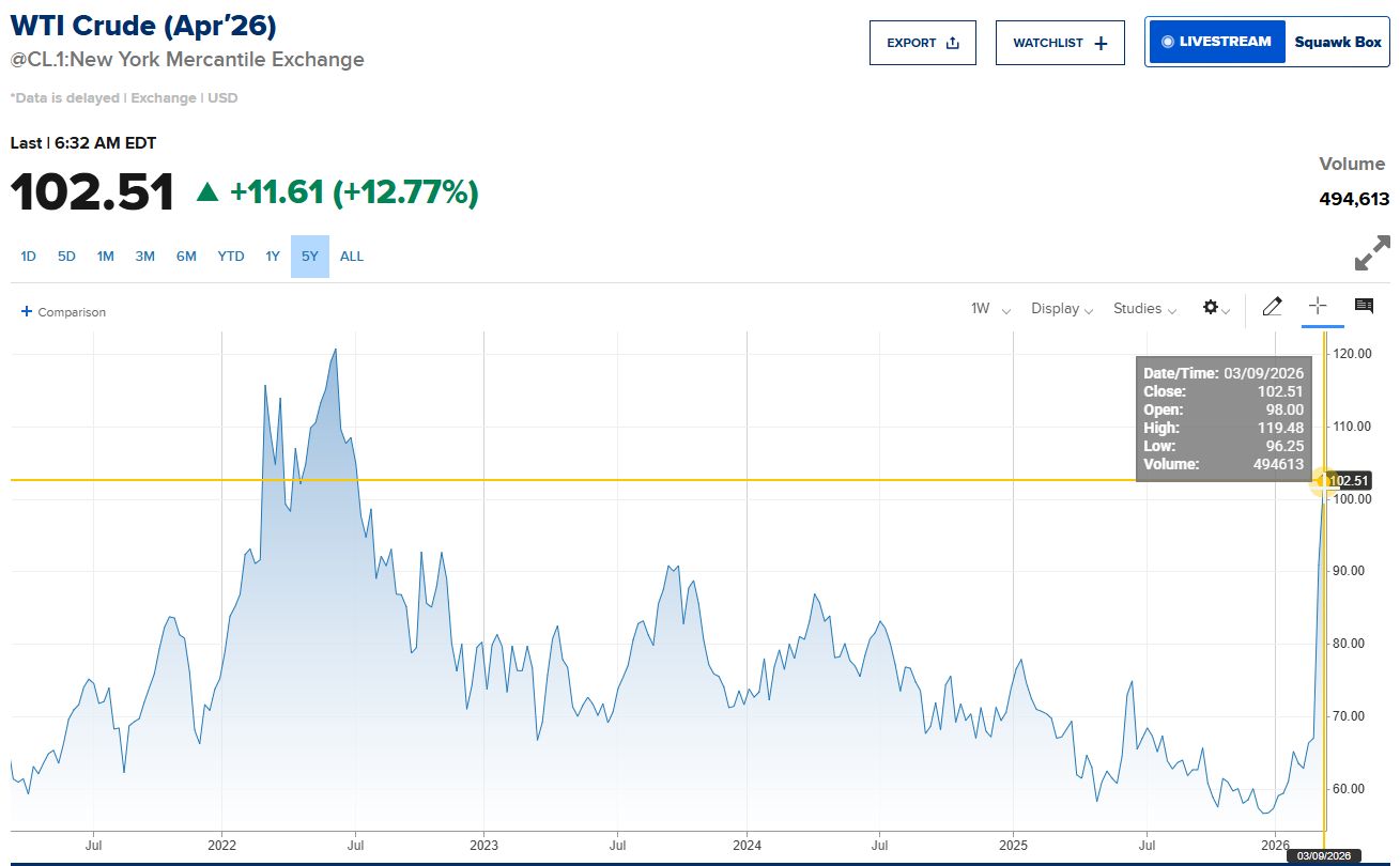 The news of the weekend was the huge spike in oil prices as the Strait of Hormuz is essentially closed.