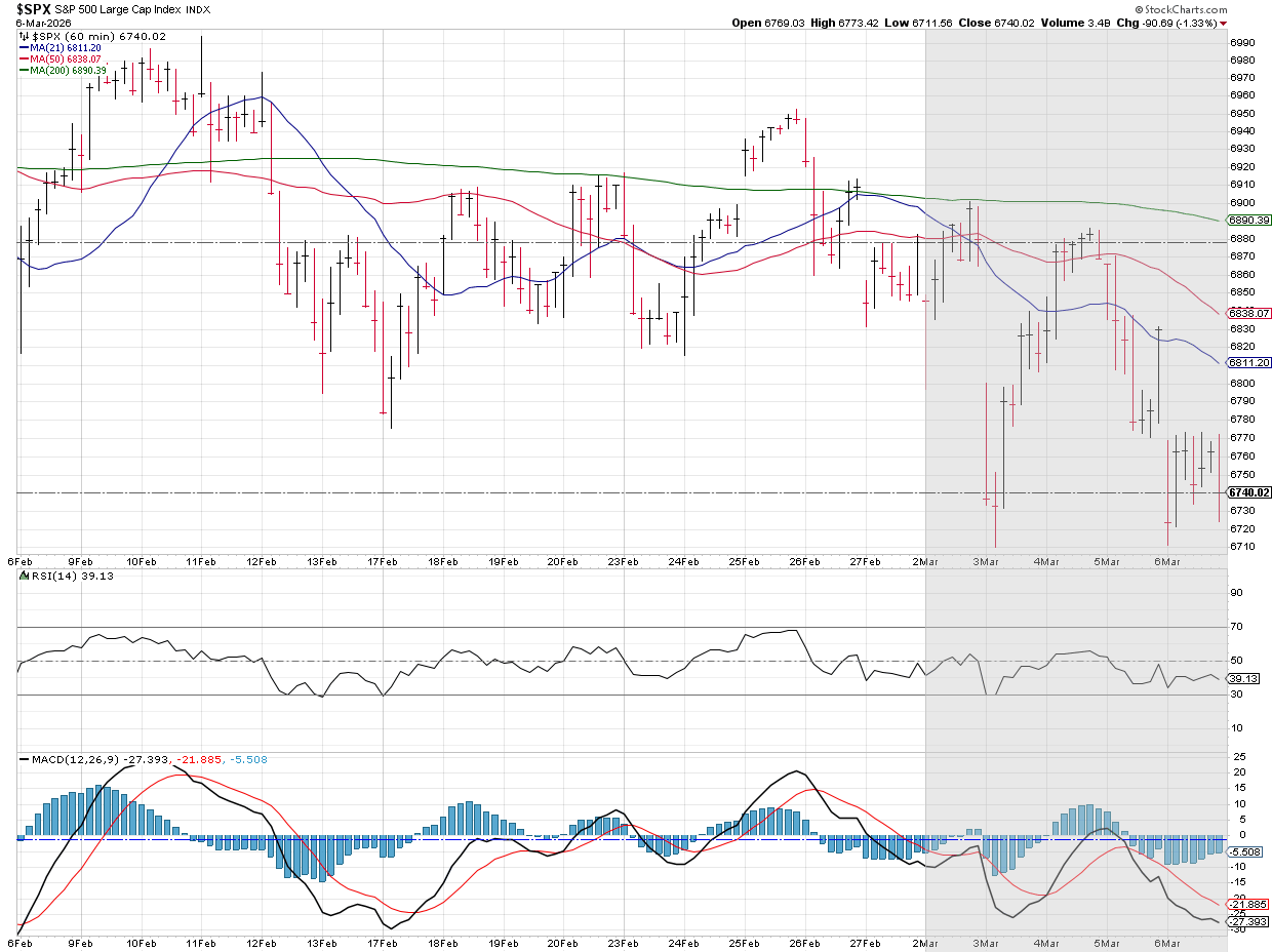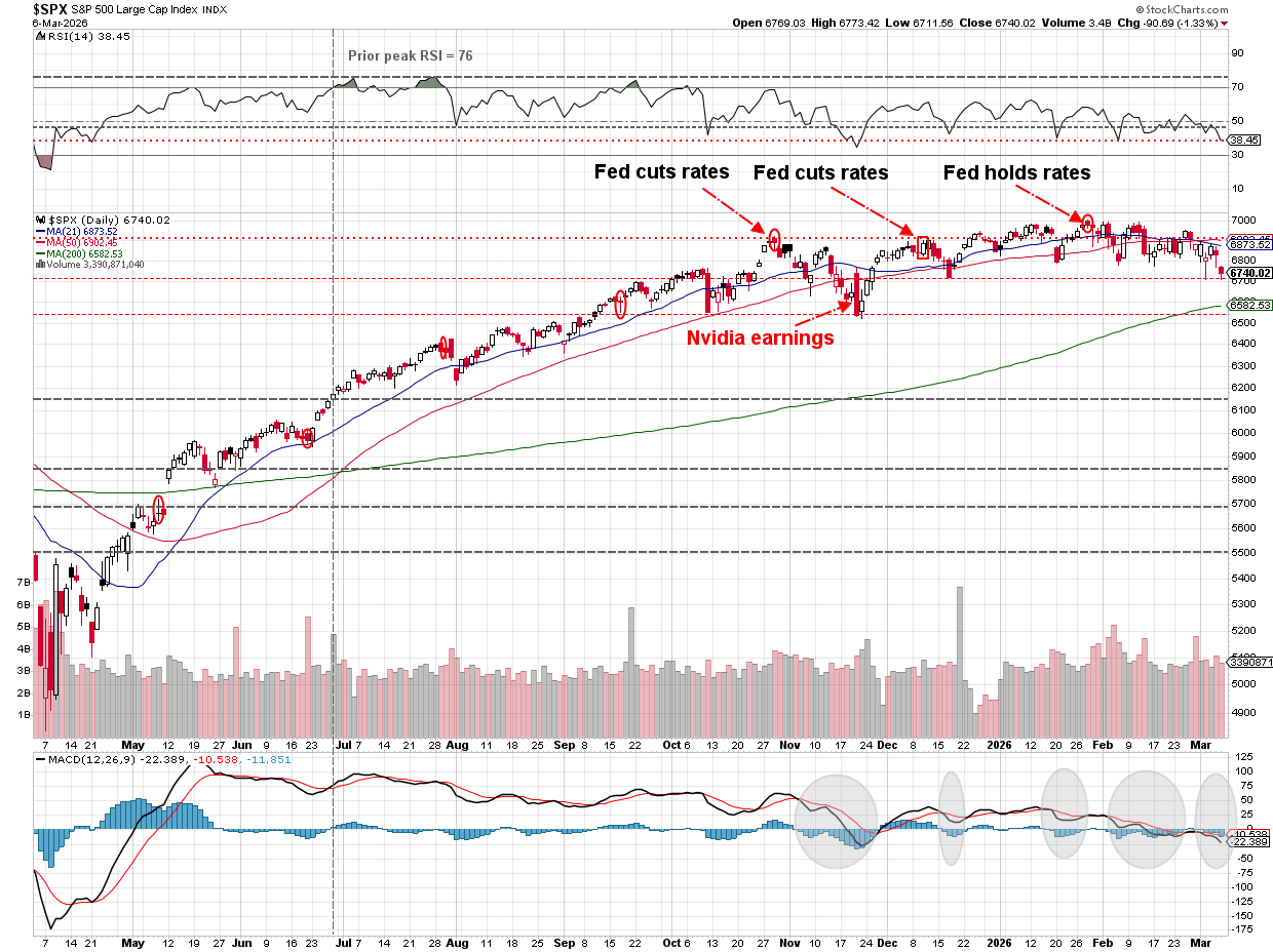 The S&P 500 is still stable, but the techncials are weakening. It looks like it will break 6700 this morning, with 6500 (the Q4 2025 lows) the next level we'd like to see hold.