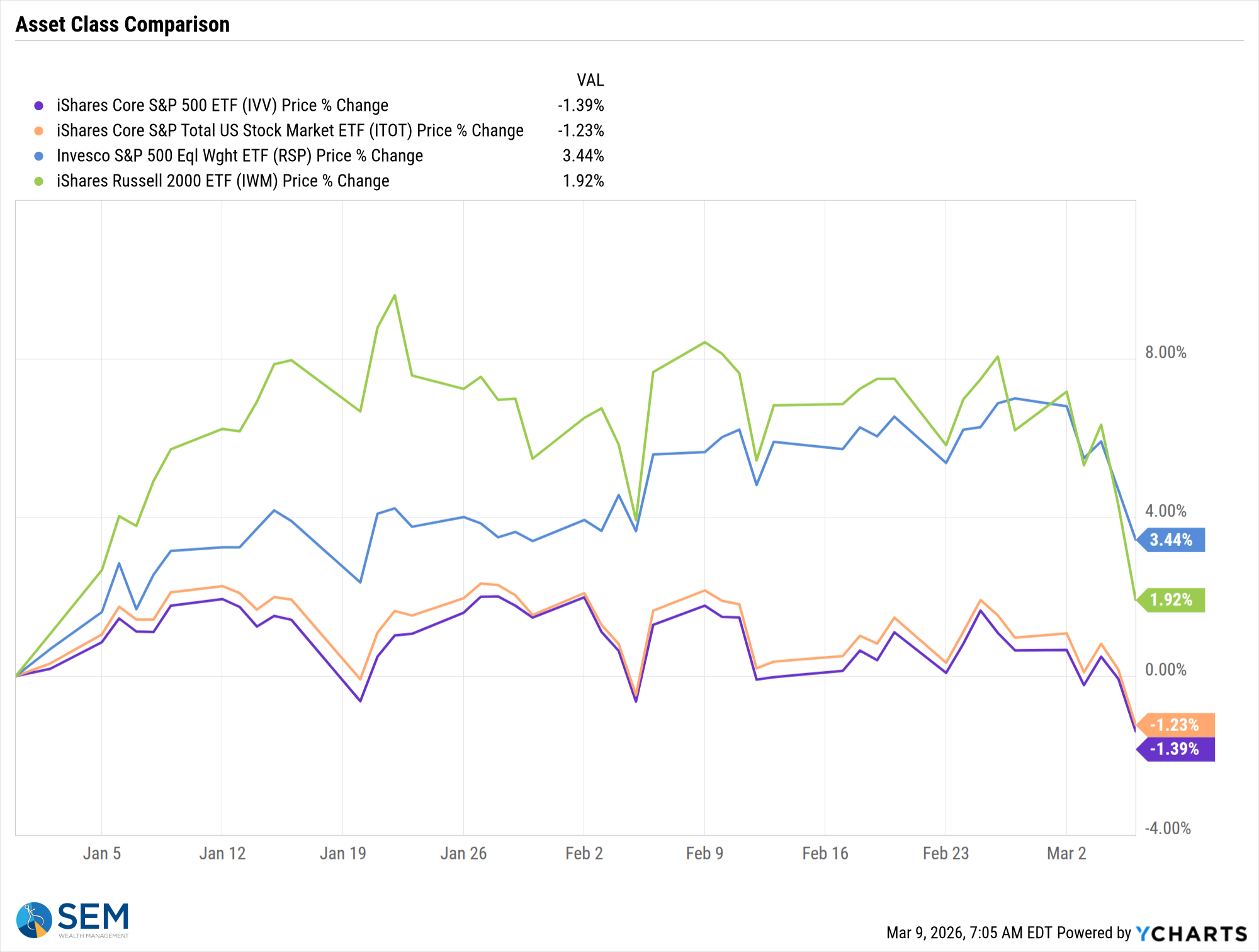 The "broadening" we've been enjoying in 2026 took a hit last week and logically so – if the economy is slowing and inflation is increasing, the smallest companies will be hurt the most.