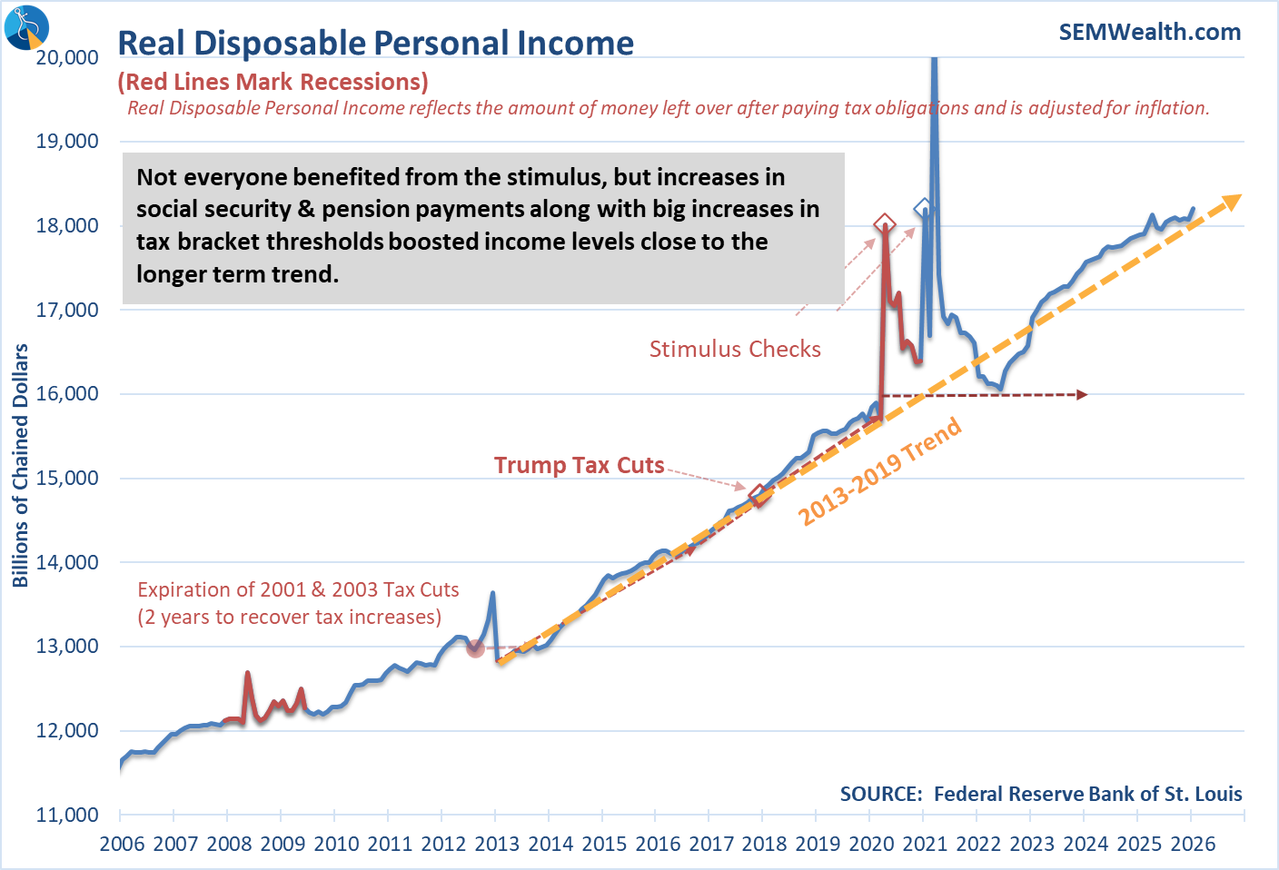 Personal Income did not enjoy the same shift. It is currently running just above the 2013-2019 trend.