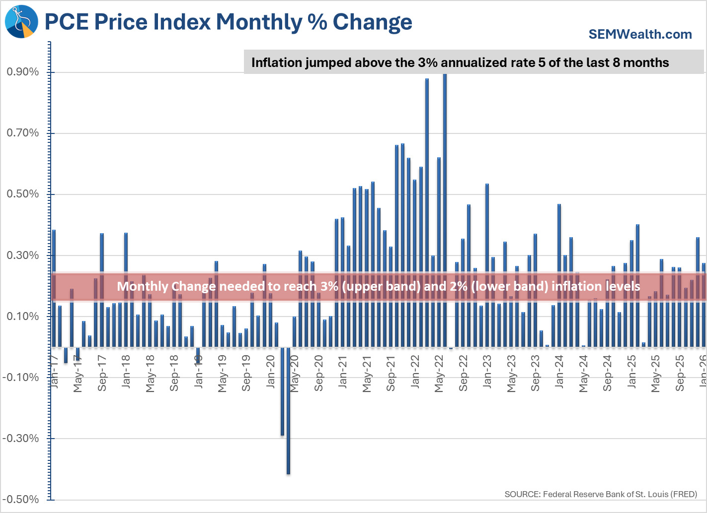 We also saw the Fed's preferred inflation measure, the PCE Price Index again rising above a 3% annualized rate. Keep in mind, this was from January – before the war in Iran caused oil prices to spike.