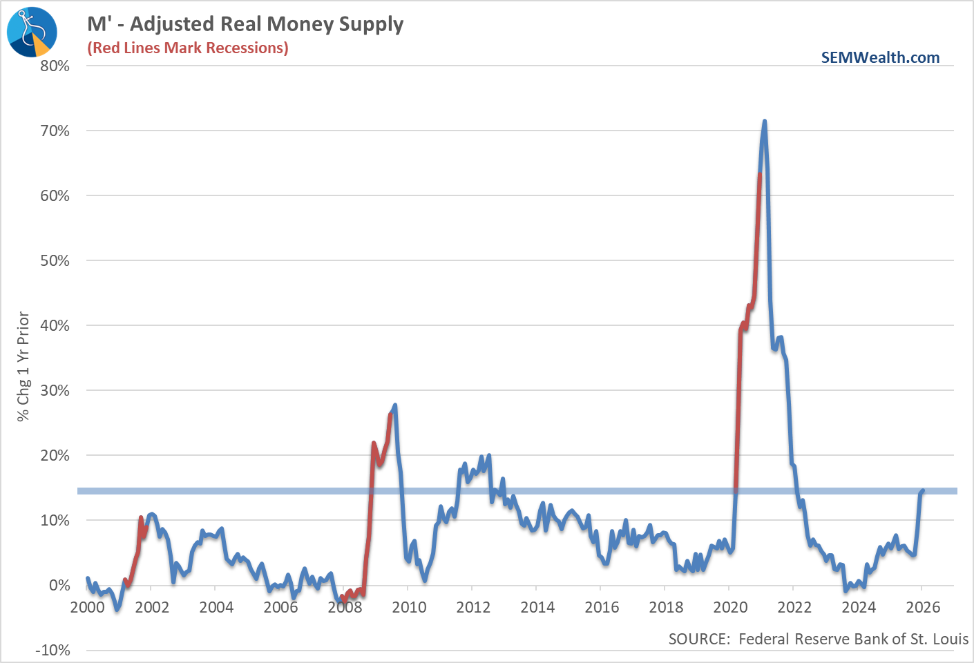 Speaking of the Fed, for all the bashing about rates being "too low" the Fed has ramped up the money supply based on the just released data for January. There is now 14% more money in circulation than we had a year ago, a significant spike.