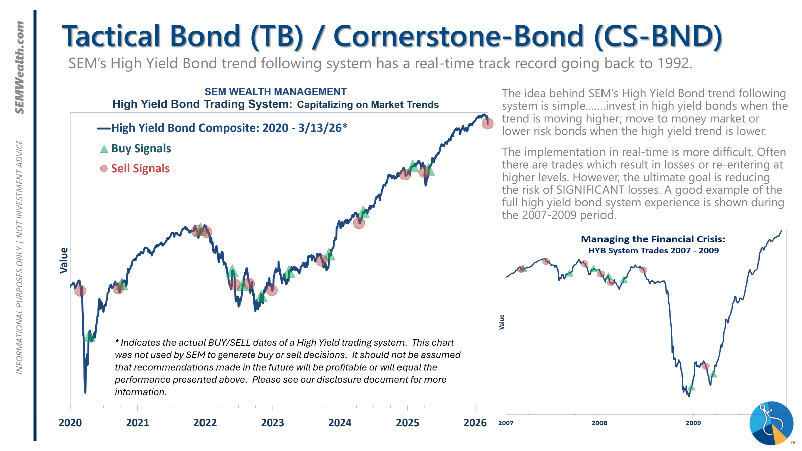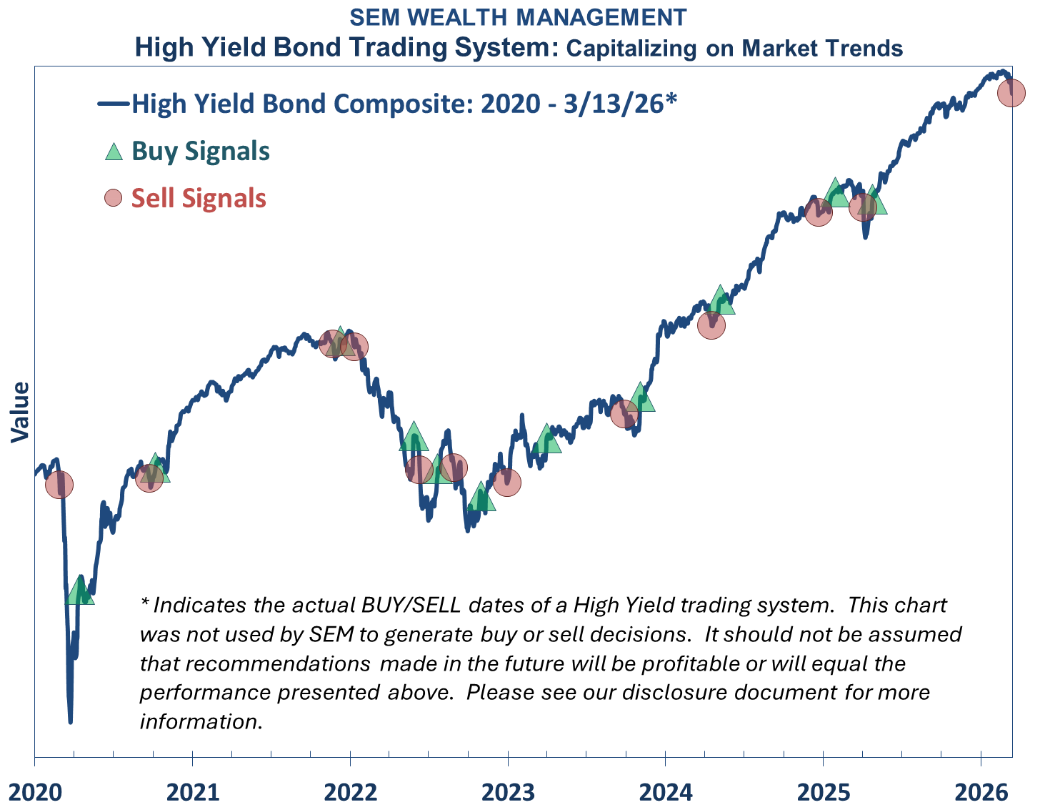 Tactical (daily): The high yield system sold on 3/13/2026 after the buy signal from 4/25/2025.
