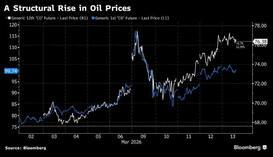 Last week Bloomberg Odd Lots had an interesting chart showing the difference between the "near month" price of oil (the price quoted when we talk about oil prices) and the price if you want delivery 12 months out. Before the war in Iran started, these contracts were tracking about the same. Interestingly enough, the recent decline in the near-month price is thought to be temporary with upward pressure on oil prices remaining a year from now.