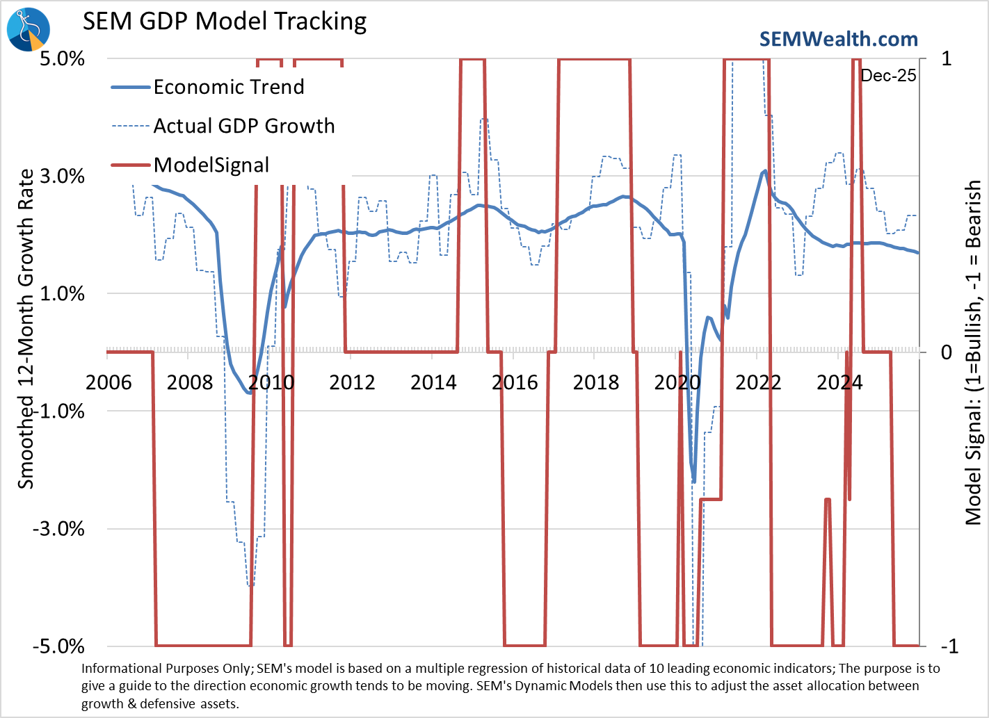 SEM has been around for over 30 years and has seen our fair share of changes. The secret to our survival is our study of market, economic, and human history and using DATA, not our opinions to make adjustments. We most certainly could see another year of AI data center build outs driving GDP higher. We also could see that spending questioned, the financing behind it running into problems, communities fighting any further expansion, or any number of other things we haven't thought of.