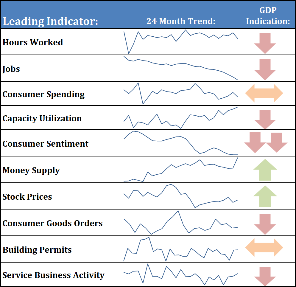 As for the rest of the economy? There are few bright spots. Our economic dashboard helps us tell the story of each of our leading indicators.