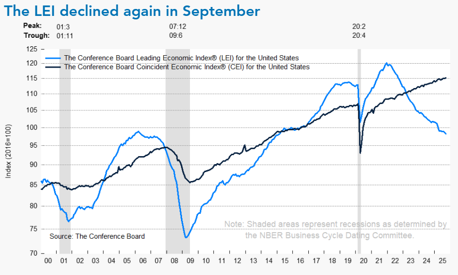 For what it's worth, its not just SEM's economic models not seeing the improvement in the growth rate the second half of 2025. The Conference Board's leading economic indicators have also been pointing towards a slowdown since the beginning of 2022. The "coincident" indicators thus far as still moving higher (although not anywhere near the pace of the overall economy).