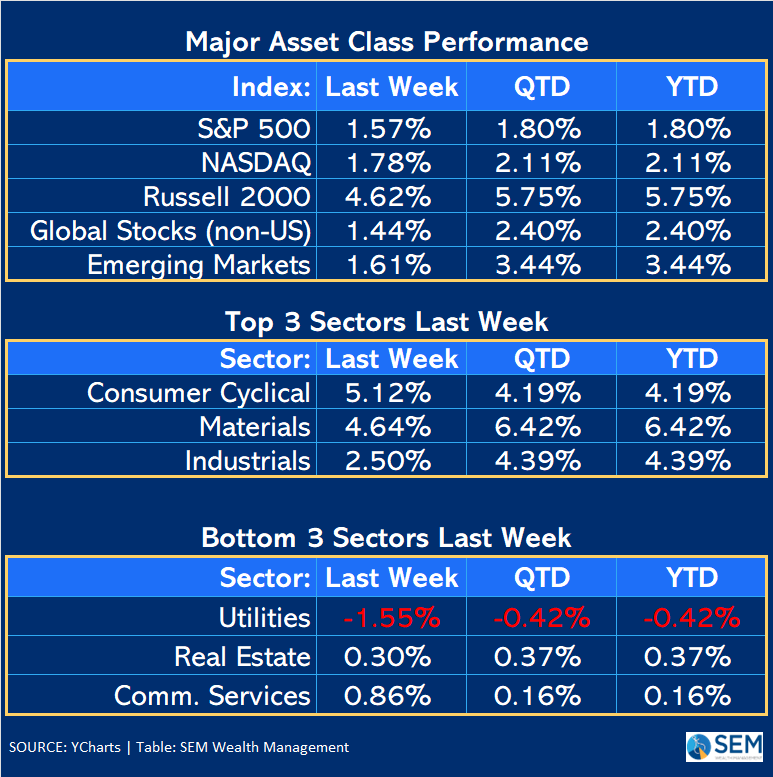 From a technical perspective I'd like to see the RSI Index "confirm" the push above the previous "Fed" highs from October and December, but for now with the S&P 500 (barely) at all-time highs, the trend is technically up, meaning unless something comes along to force a change, we should expect more of the same.