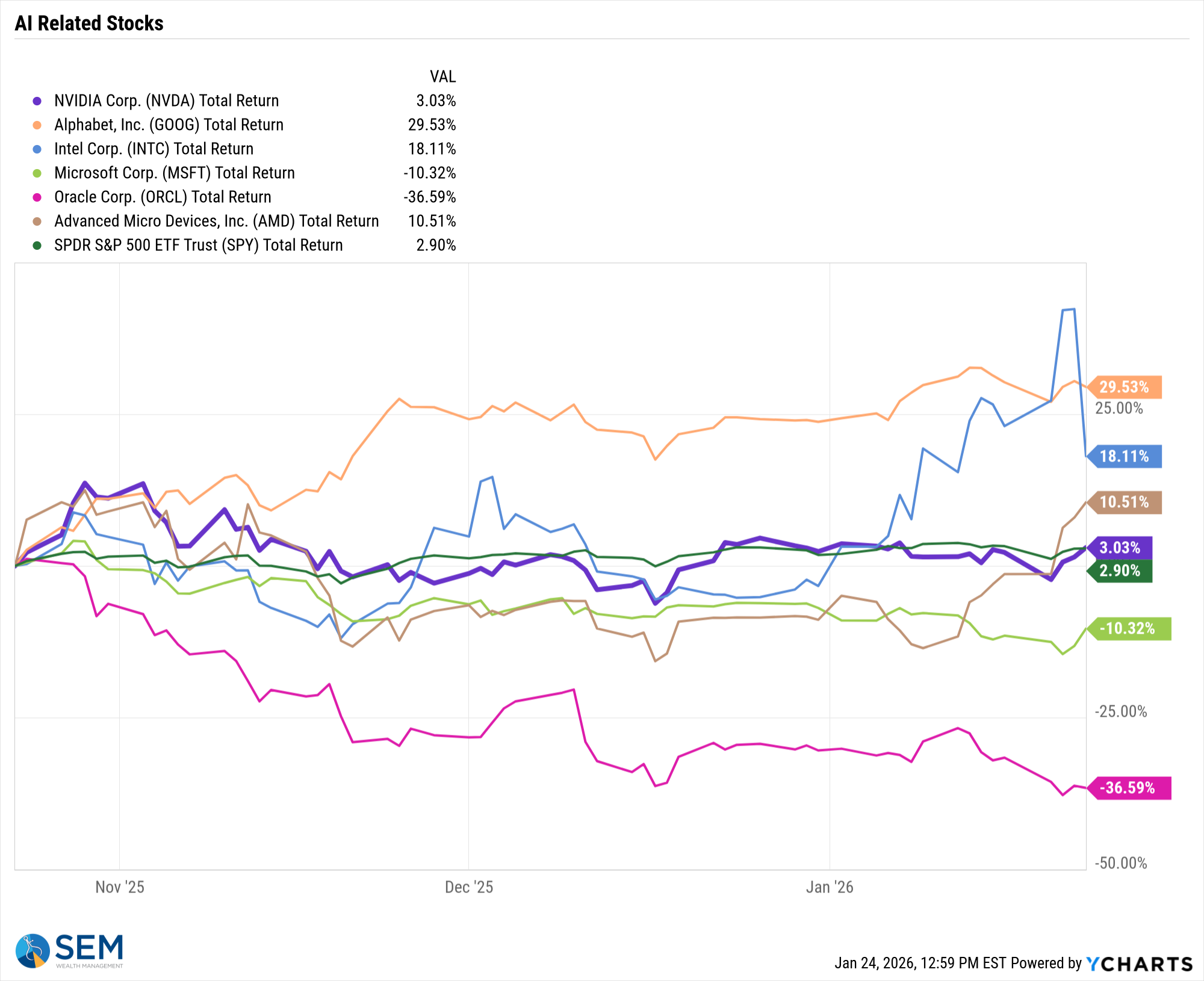 3. Intel cratered, while select AI stocks held the line