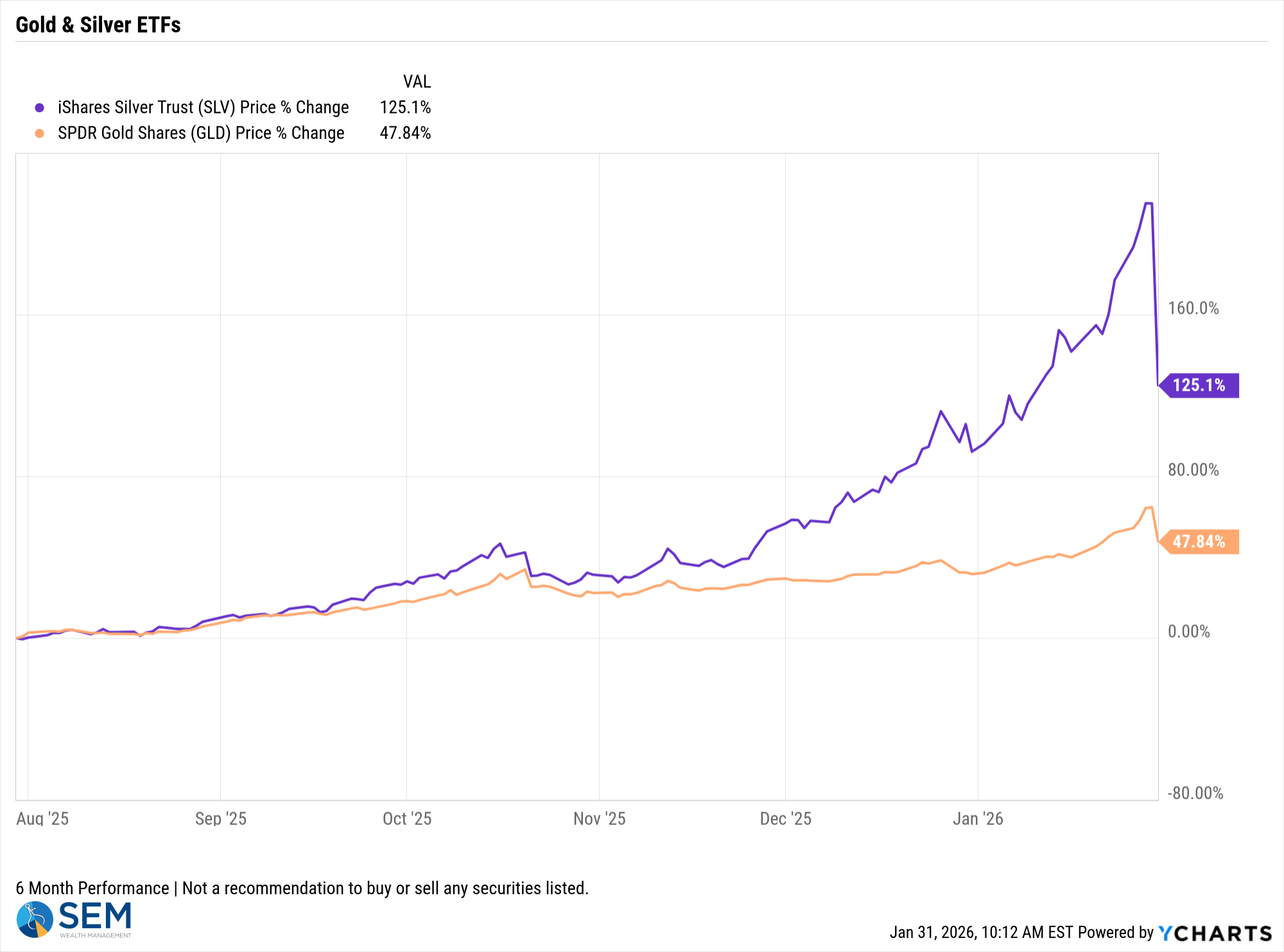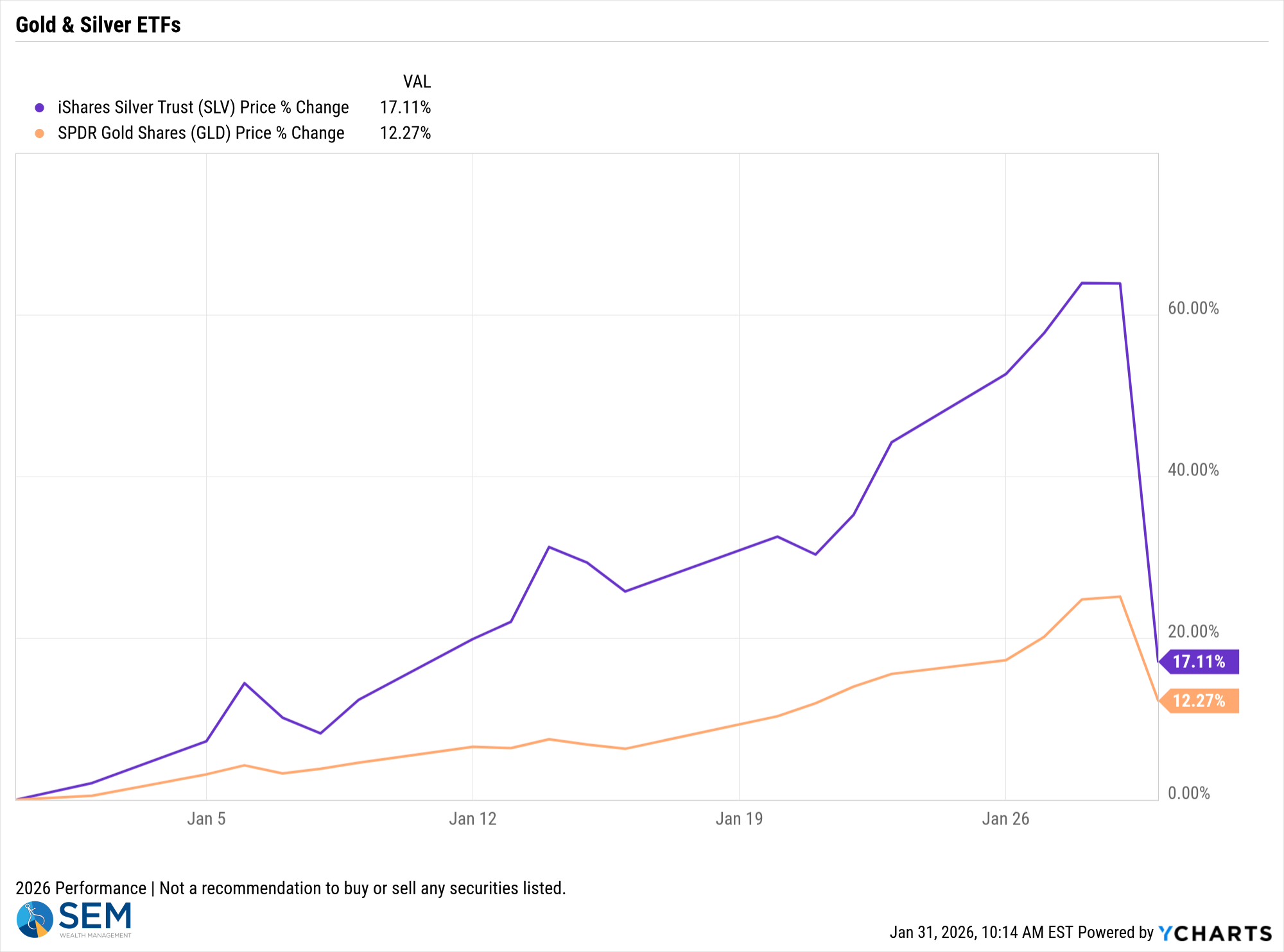Even after the huge drop on Friday (SLV was down 27% & GLD was down 9%), both ETFs are still up nicely the first 4 weeks of the year.