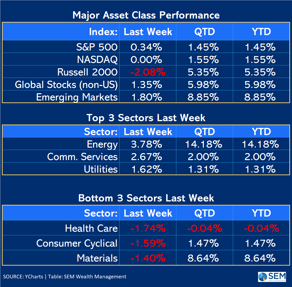It was technically a winning week for the S&P 500, but the market continues to see big swings back and forth in terms of leadership.