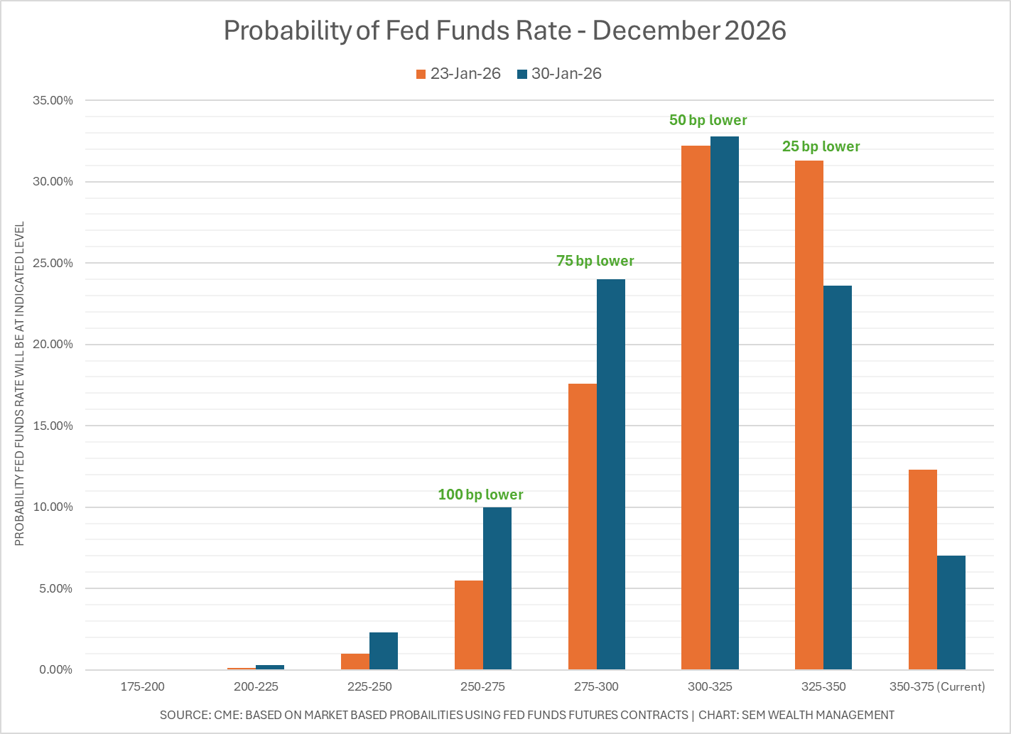 In his 3rd to last meeting as Fed Chair, Jerome Powell and the Fed held rates steady. This wasn't really a surprise as the labor market is still (technically) adding jobs and the drop in the inflation rate appears to be slowing (if not reversing up.) The real surprise came on Friday with President Trump’s plan to nominate Kevin Warsh as the next Fed Chair. Mr. Warsh's position on rate cuts has been clear – he believes rates should be much lower, but it is his past stance on Quantitative Easing and the Fed's Balance sheet that apparently worries those who thought he was a rubber stamp on "easy" Fed policies.