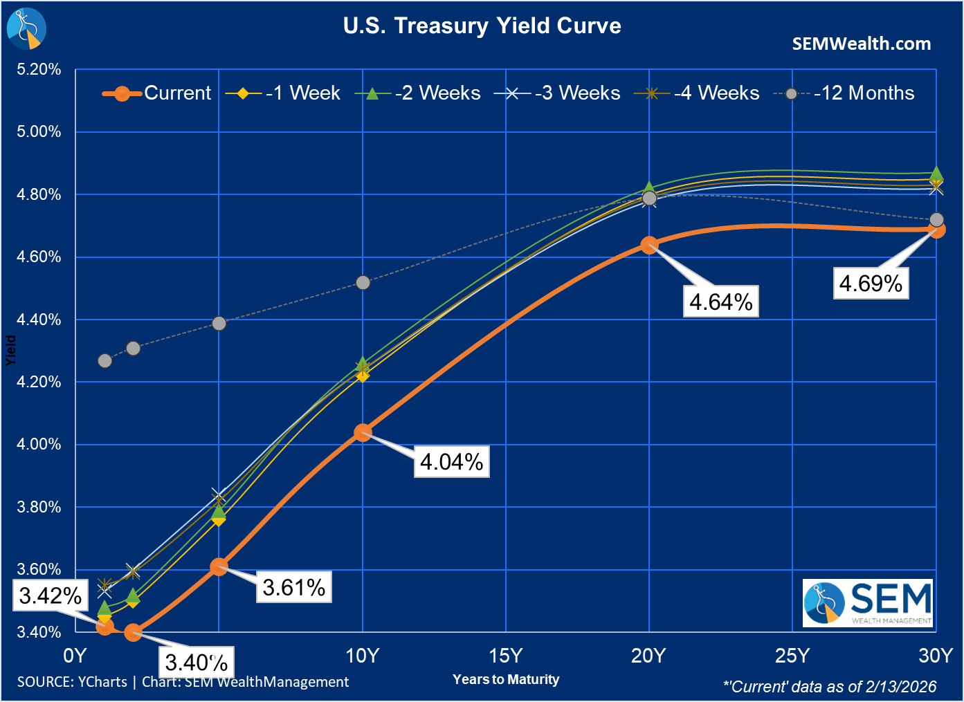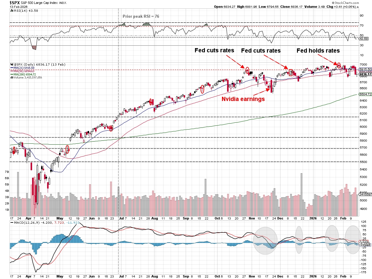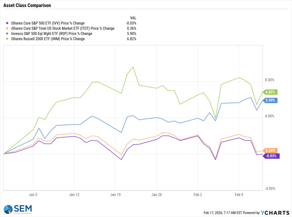 With a week's worth of noise to catch-up on, I used the weekend recaps from Bloomberg, MarketWatch, CNBC, among others to get a sense of what I missed. It seems like I didn't miss too much on the earnings front. The "SaaSpocalypse" I discussed last week is certainly still a concern (this was brought up by every portfolio manager I spoke to.) The biggest news (other than the Dow hitting 50,000 for the first time) came with the delayed jobs report and the CPI data.