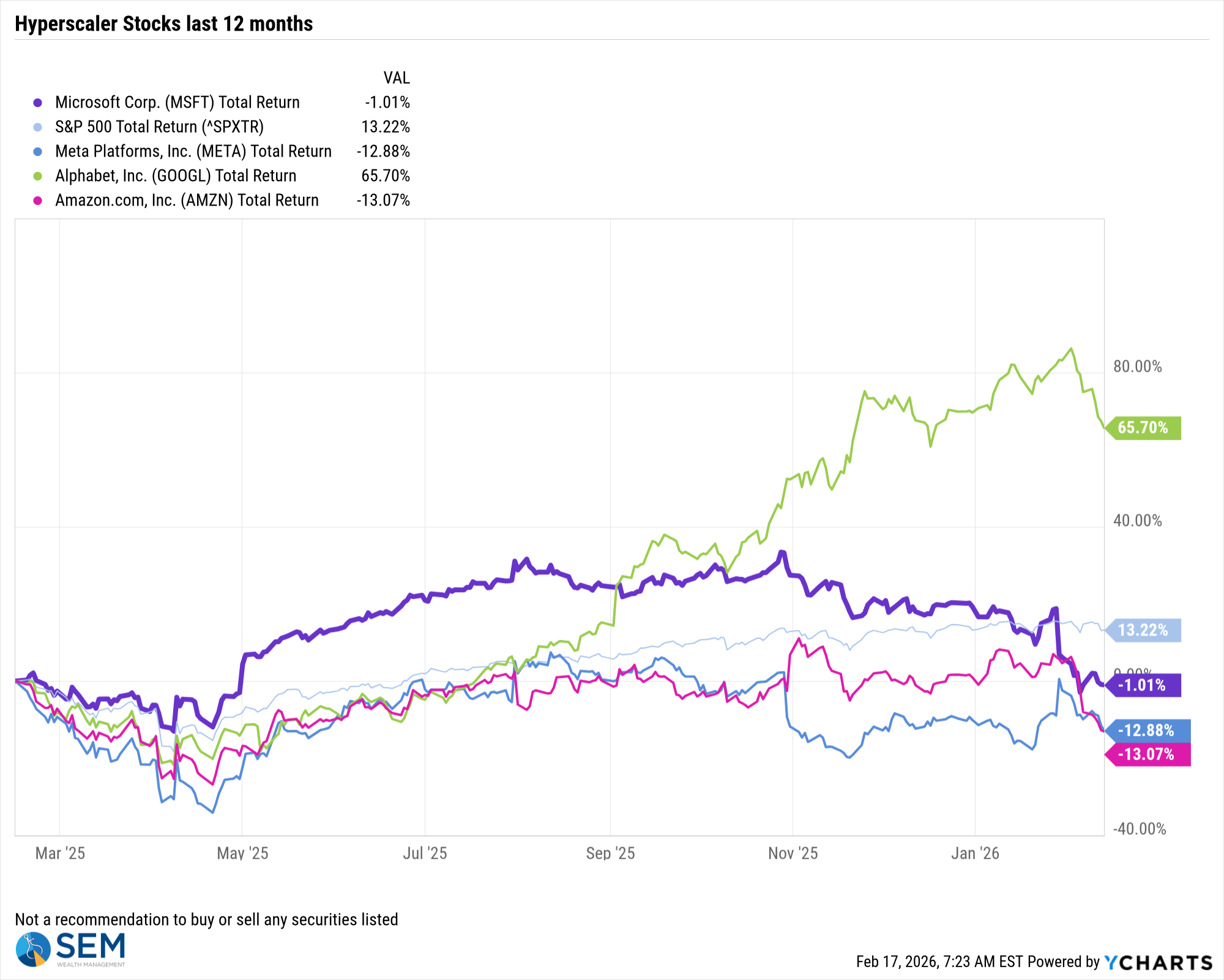 And other than Alphabet (Google), the "hyperscalers" spending all that money on "AI" Data Centers have dramatically underperformed the S&P 500.