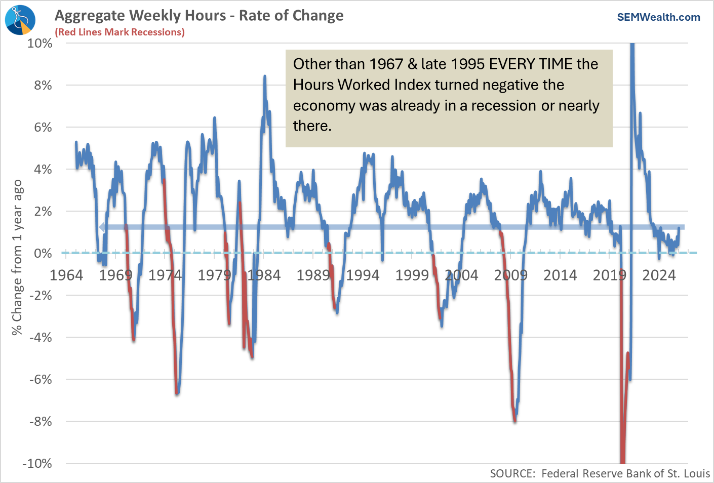 More importantly, the Hours Worked index hooked higher. At the conference I heard every portfolio manager I talked to describe this as a "no hire, no fire" economy. The stark move hire in the hours worked index is an encouraging sign as employers will first increase the hours their employees are working before they finally decide to hire more people.