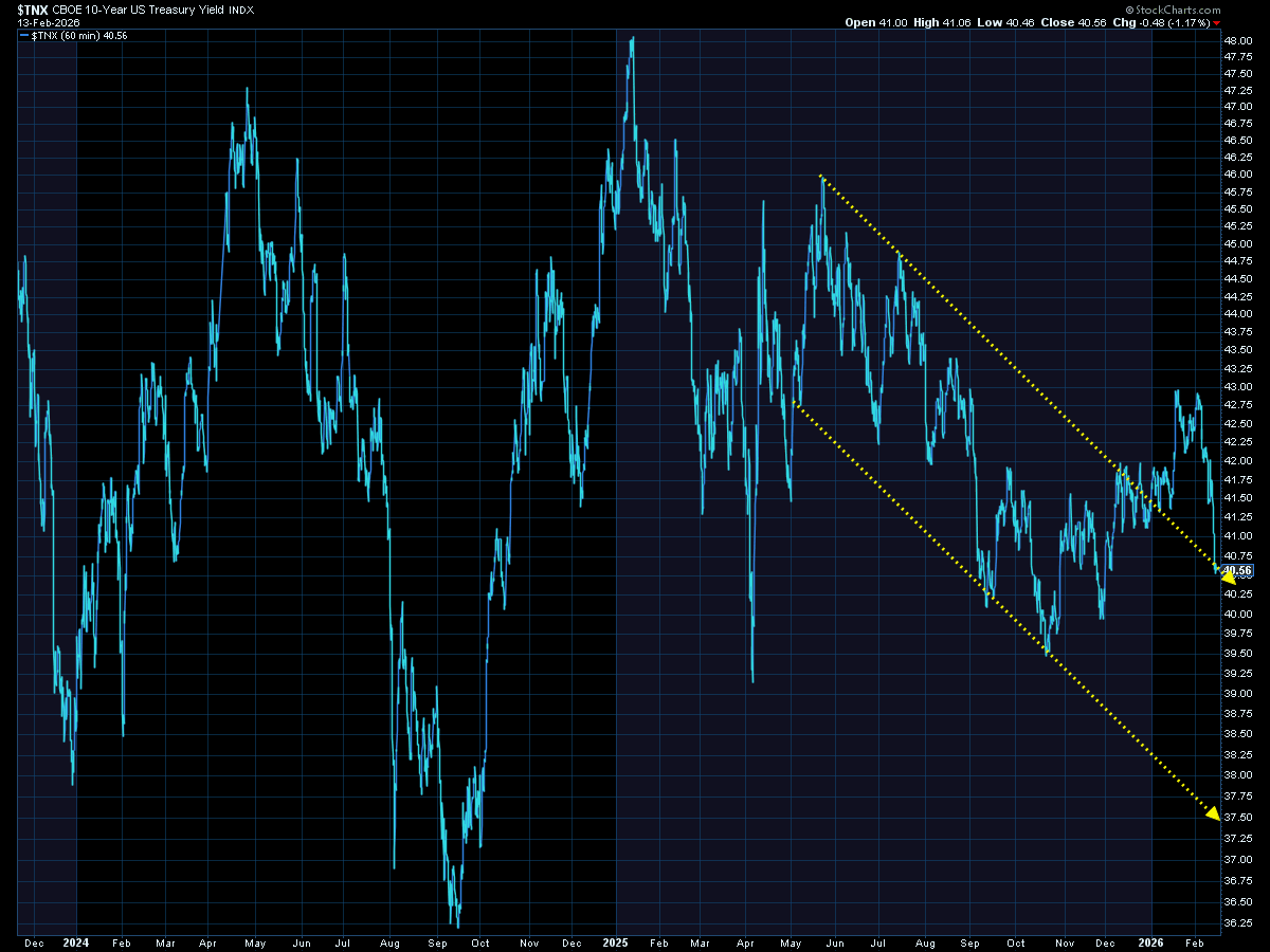 Probably the biggest market mover last week was the 10-year Treasury bond. Following the CPI data on Friday we saw a sharp move lower in bond yields. While the prospect of rate cuts are still pushed out to June (after Chair Powell's term ends), the market is clearly encouraged by the deceleration of the CPI data.