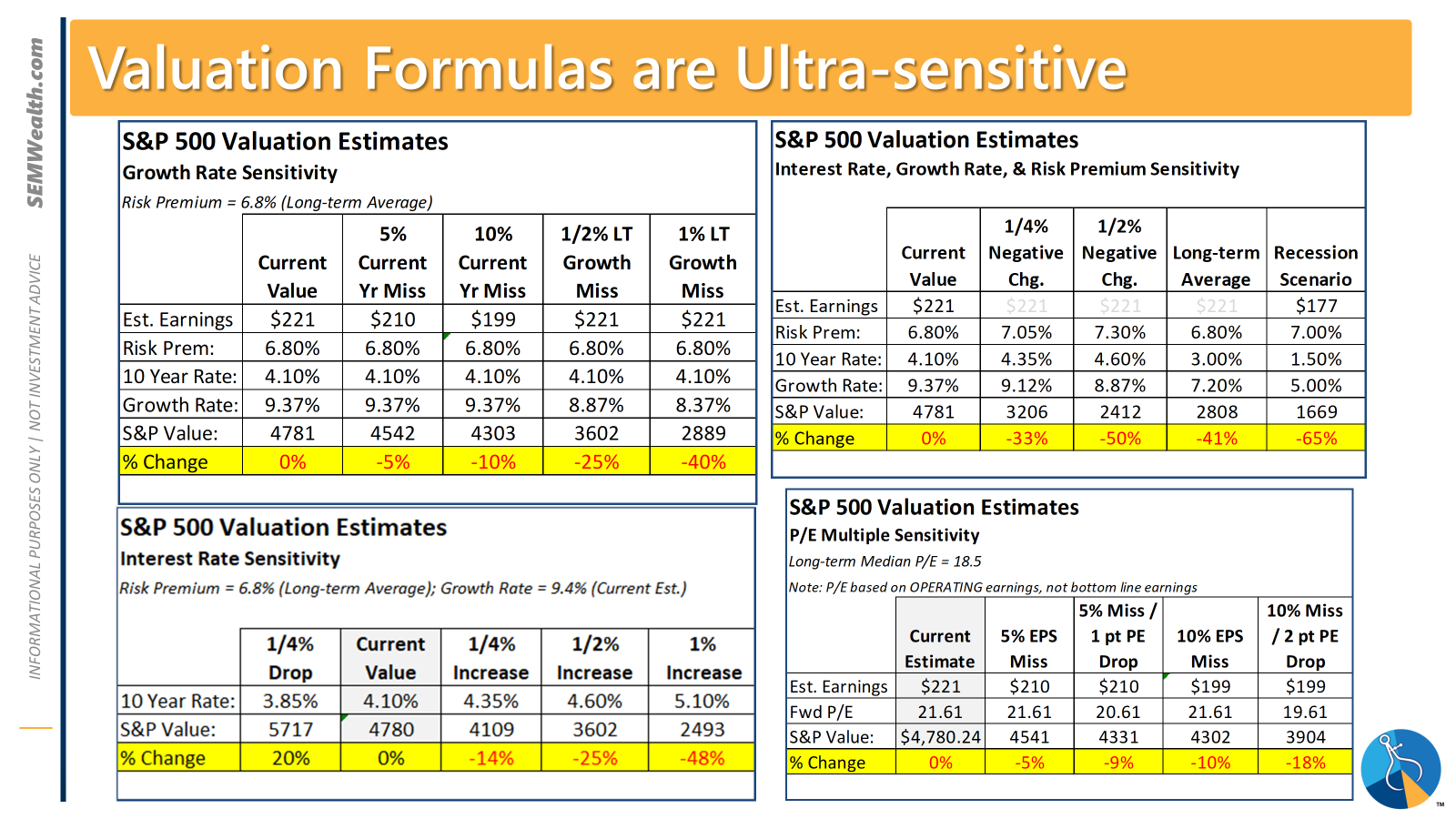 Note how very small changes in the input causes a huge swing in the 'intrinsic value' of the market (or a stock).