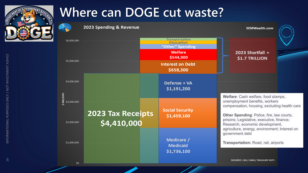 That's not happening, so we get the sideshow of DOGE making bold chainsaw cuts and then have Democrats criticize President Trump's spending on golf outings. NONE OF IT MATTERS in the whole scheme of things!