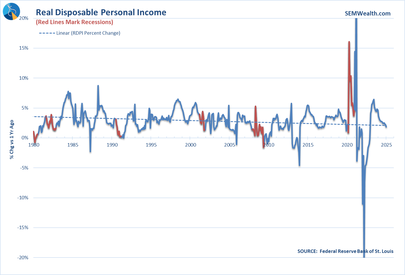 The bigger concern comes from Personal Income, which grew less than 2% year-over-year through January. Lower consumer sentiment, lower income growth, and increased anxiety are not recipes for stronger spending.