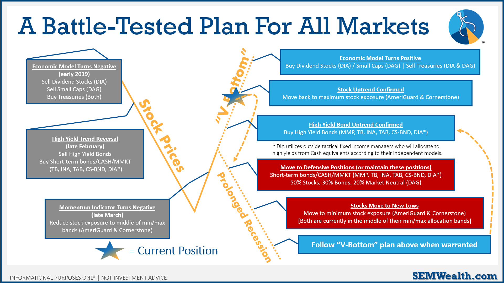 Note the "Current Position". Our plan has played out perfectly. Sure with hindsight, you could say, "selling was a mistake". We don't invest with the benefit of hindsight. Our data-driven process allowed us to walk our clients and advisors through all the steps of what would happen before they happened. We had already taken action before most people even noticed there was a problem. We continued throughout March to calmly work our plan in the midst of unprecedented volatility and uncertainty. As the market has rallied, we've seen money put back to work and take advantage of the rising prices. Minus our economic model, we are "all in".