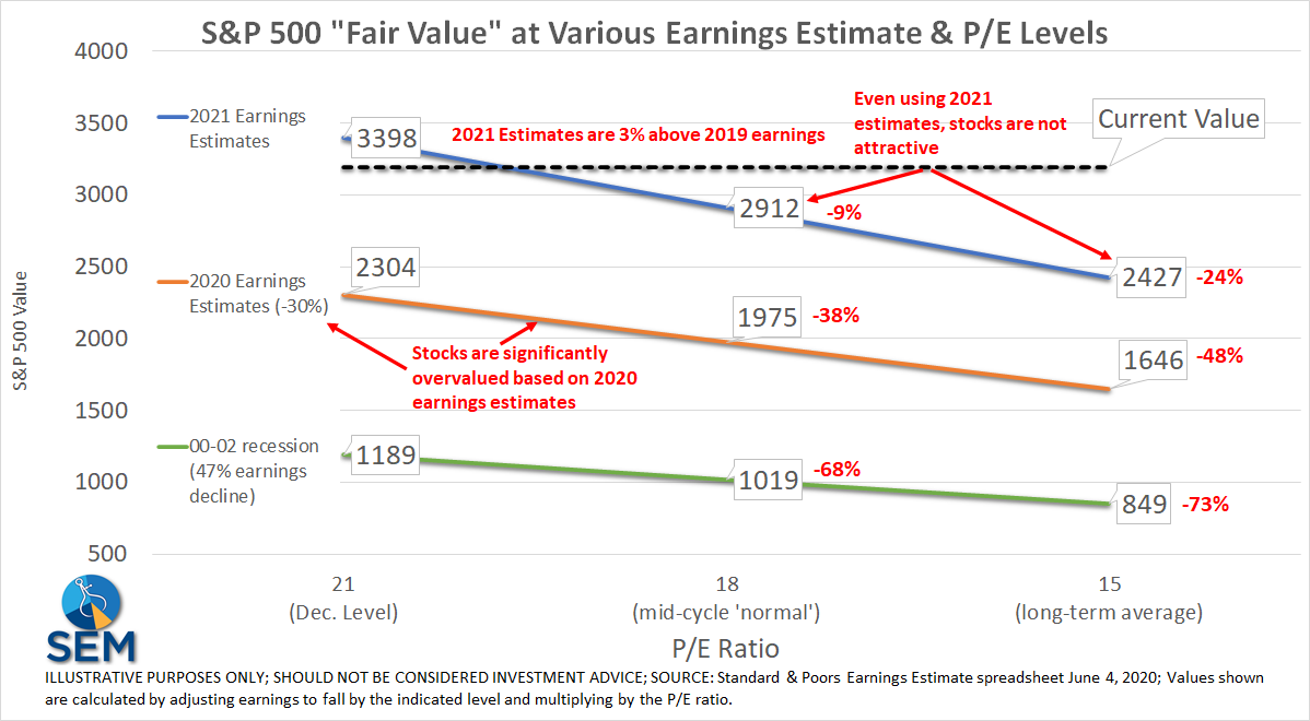 The market expects in less than 18 months corporations will have recovered 103% of where they were at the end of 2019. Crisis over, more growth ahead. I hope that is the case, but what are you paying for that type of growth? You're paying an unprecedented multiple of those earnings. Today you're paying nearly the same amount for earnings that are 18 months out as you were paying at the start of the year for earnings that were already reported. Despite all the uncertainty in the strength of the recovery, stocks are pricing in no risks.