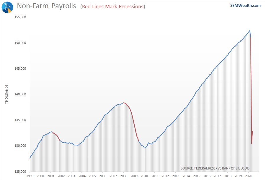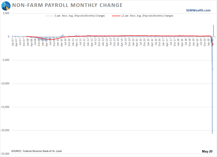 Let's look at the payroll numbers through a series of charts. April we had record job losses. May we had record job gains.
