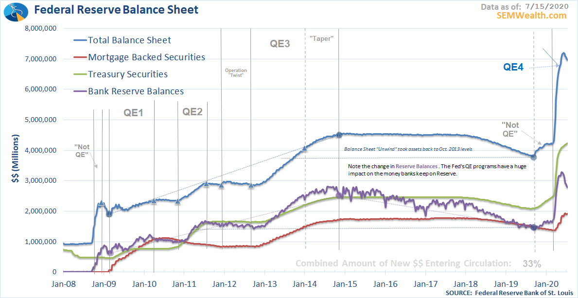 The good news is the usage of the Fed's facilities has slowed enough their balance sheet has declined a bit the past 5 weeks. In the whole scheme of things this could be a minor slowdown, but it is encouraging short-term. Increases in the balance sheet could also be seen as a sign banks are struggling, which could be a much bigger concern for those banking on a strong economic recovery. Here's the updated Fed Balance Sheet chart.