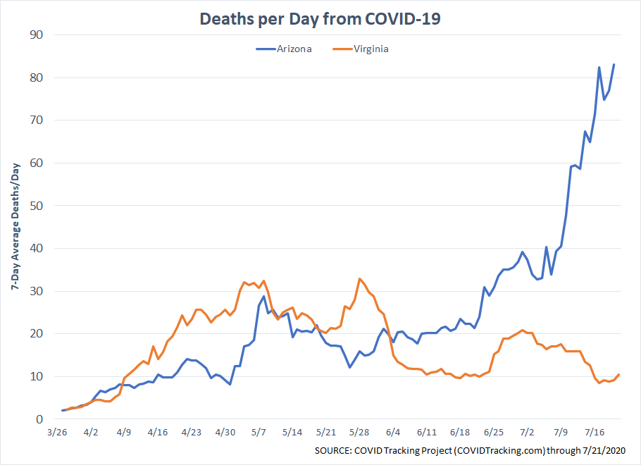 Looking back in at Arizona and Virginia, you can again see the difference in policies. I've pointed to Virginia as an example of what they meant when we were told the goal was to "flatten the curve".