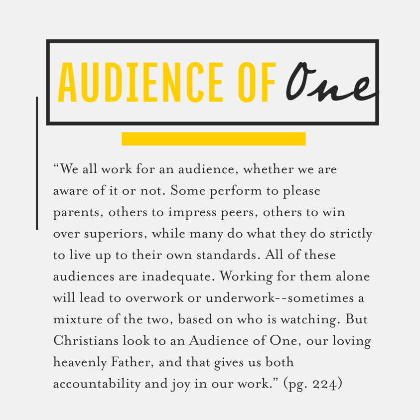 Christians look to an Audience of One—our loving heavenly Father. This gives us: