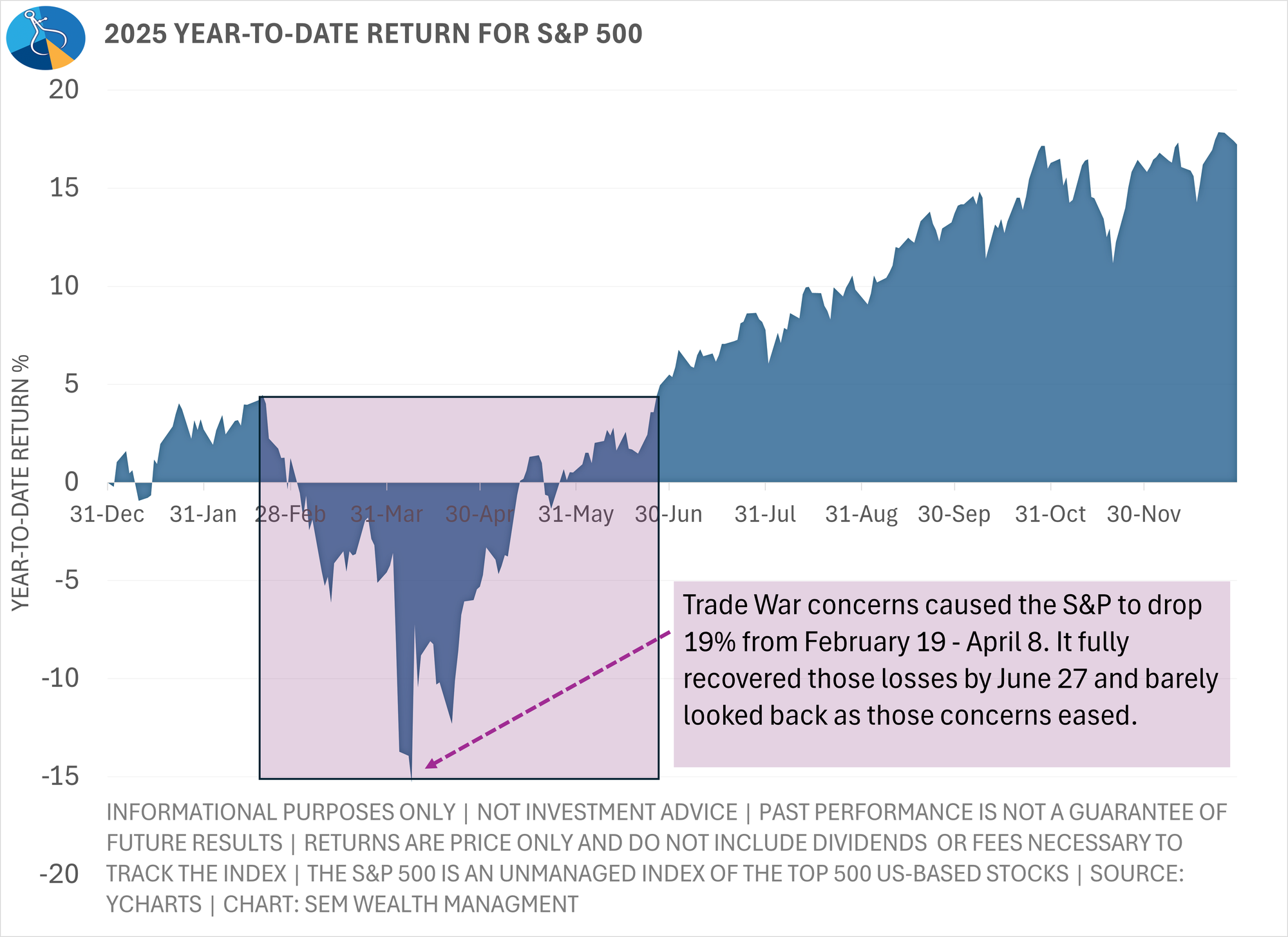 Our goal at SEM is to lessen the cycles our clients go through by applying quantitative, risk management strategies. These strategies have been tested over all types of up and down cycles. Through our testing and 33+ years of experience, we know at times applying any sort of risk management to an account will hurt overall performance. 2025 was one of those years.
