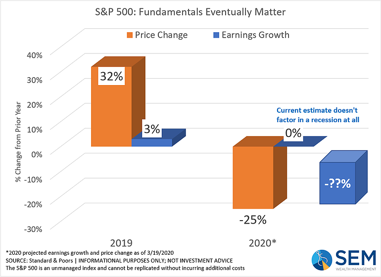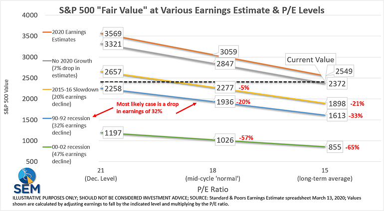 - Now the question is what happens to the economy and corporate earnings. Based on past recessions, the market could fall another 20-33%.