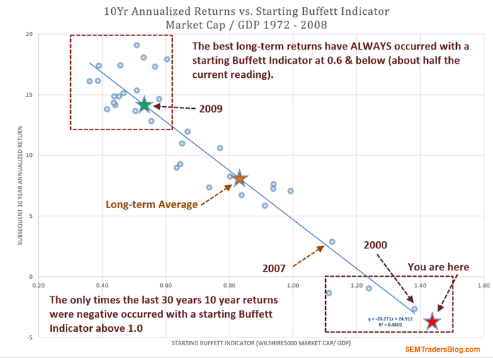 Probably the biggest concern is shown in Bonus Chart of the Week #6 (also last week’s Chart of the Week). All those investors who have jumped into the market near the all-time highs are facing NEGATIVE returns for the next 10 years (if they actually hold on that long).