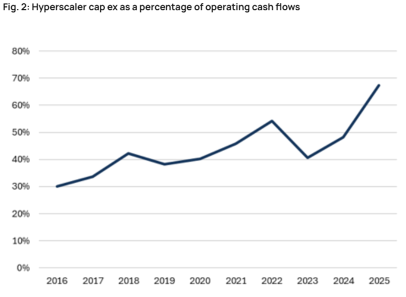 Since the launch of Chat GPT by OpenAI in 2023, we've witnessed an unprecedented amount of spending by just a handful of companies. These so-called "hyperscalers" are Amazon, Alphabet (Google), Microsoft, and Meta (Facebook/Instagram). In 2025 alone, they spent more than all technology companies spent on the Broadband Internet rollout from 1996-2000.