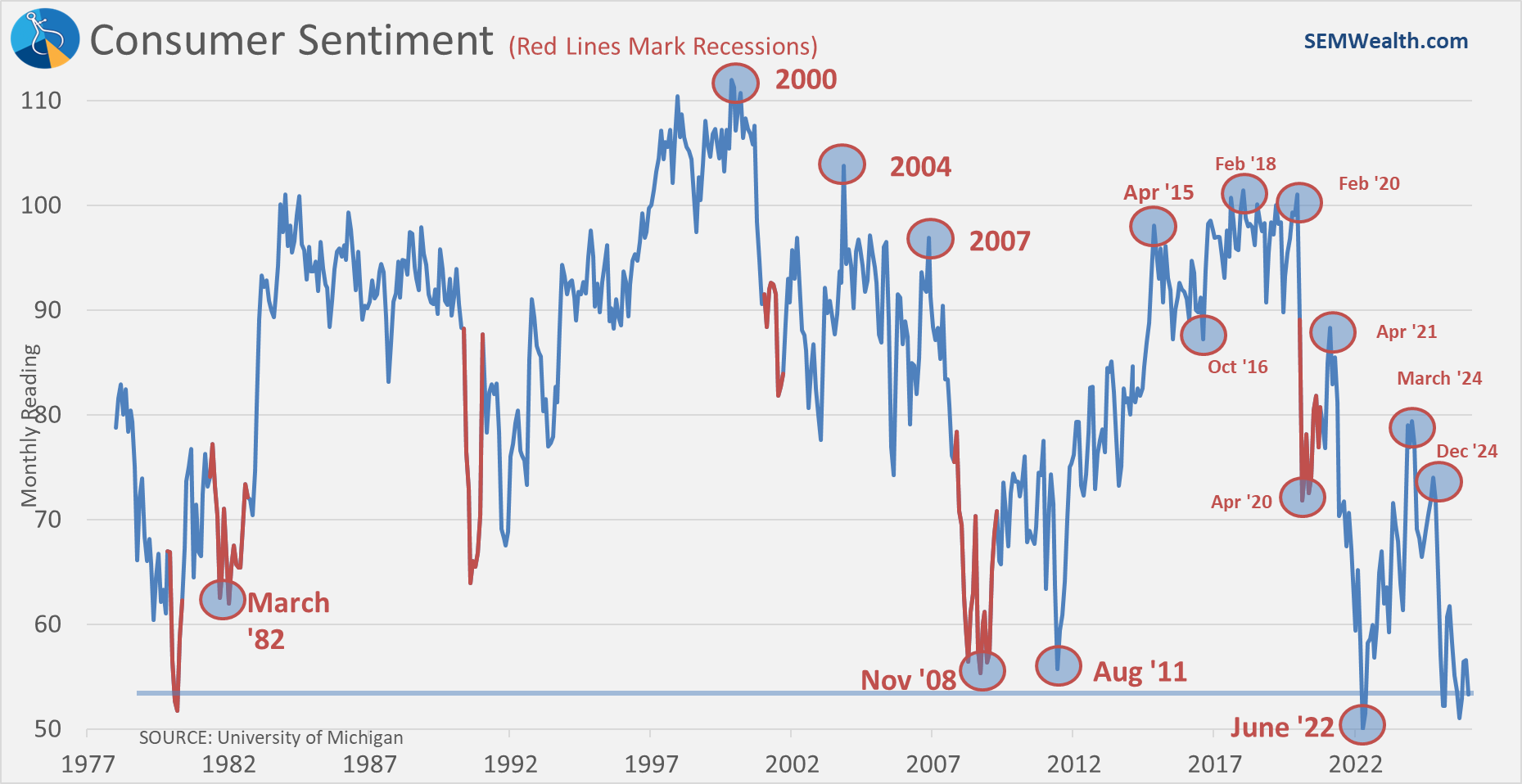 This has weighed on Consumer Sentiment, which is back down near the levels we saw in 2022 when inflation was running close to 10%. The recent spike in gasoline prices could weigh on that further.