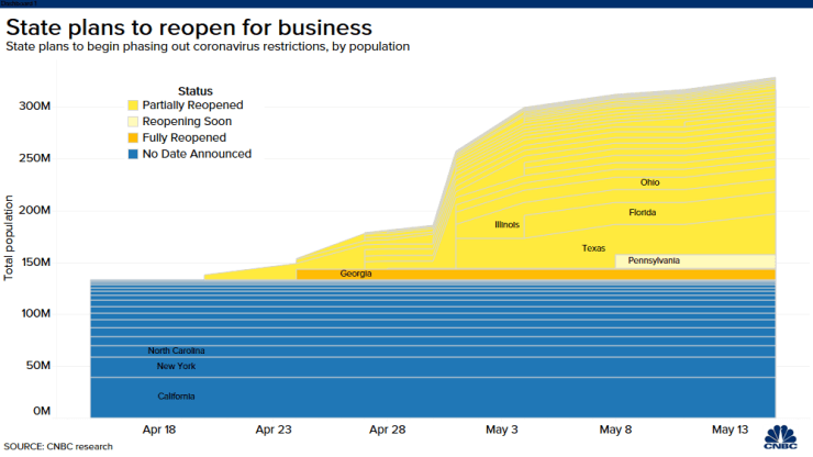 The great COVID experiment has begun. As we enter the 8th week since the US Coronavirus panic began, some states have begun to open back up. While not a controlled experiment with a ton of different variables coming into play, in four weeks we will at least have some data