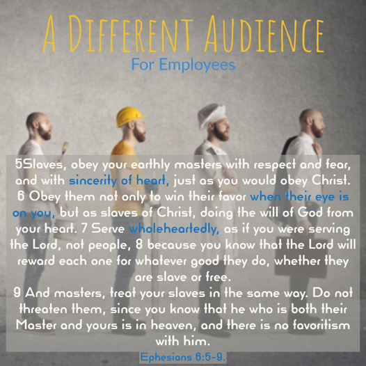 For the next two weeks, we're going to be looking at Ephesians 6:5-9. We're going to be taking Paul's teachings and applying it to both employees and employers today. This week we're