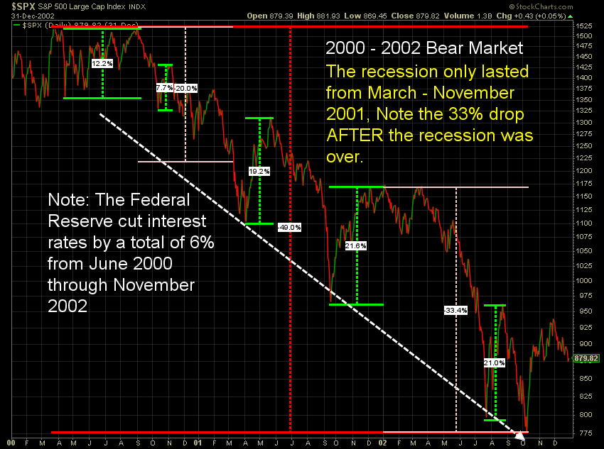 I mentioned in last week's blog how there are some similarities to this market and 2000. This includes the likelihood of just a "mild" and probably short recession. This doesn't mean severe damage cannot be done. Note the 33% drop in the S&P 500 from November 2001 through October 2002 — after the recession was already over.