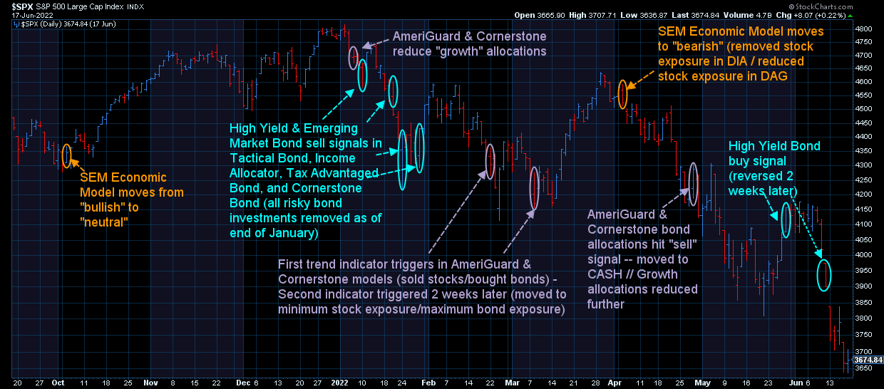 I think this is the most important aspect of everything. We began selling last fall (via our economic model). The data continued to get weaker during the first quarter and we reacted accordingly. We took more losses than we'd like (we never like losing money), but every system is working as designed and all are well within their risk parameters.