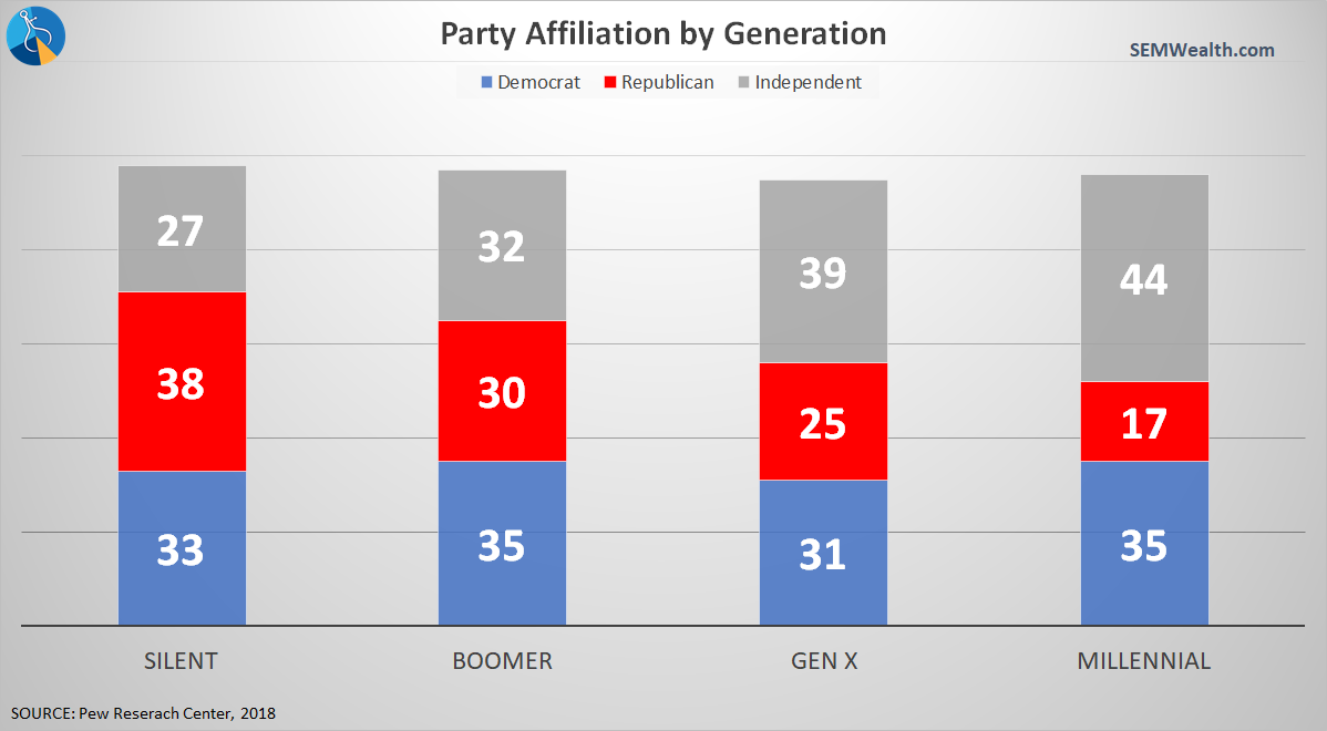 In 2018, Gen X, Millennial, and Gen Z voters outnumbered the Silent & Boomer generation for the first time ever. Logic would tell me if either party wants to survive, they need to start asking why so many people in the younger generation have become Independents