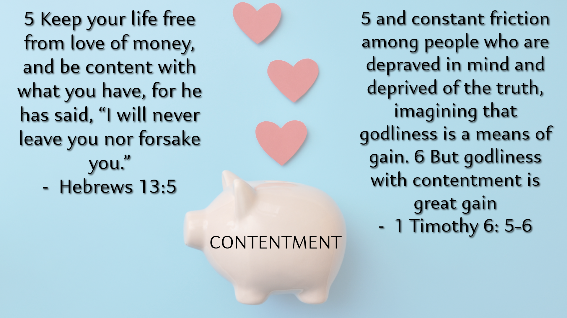 With these verse in mind, what should your attitude be towards money? You should be suspicious of it. That sounds extreme, but you really don't want to let your guard down on your attitude towards money. Yes, you can do a lot of good with money; however, you need to always be cautious because it can easily turn into a master in your life. In today's society, there is a big emphasis on money and how to make the more of it. When others around you are constantly trying to make more, you need to learn to be content with what you have.