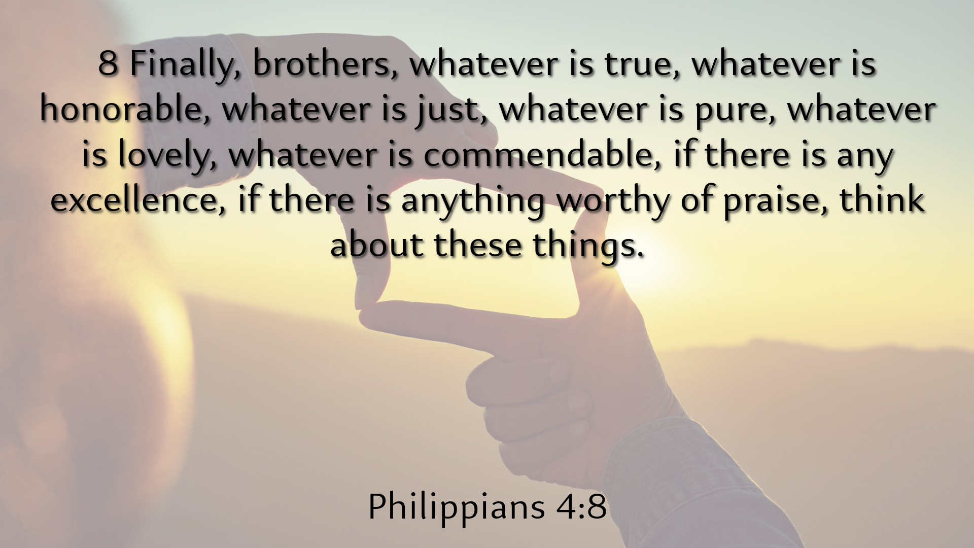 While it'll be difficult, we have to break the habit of looking to darkness. We have to be intentional about focusing on the light. In a world where we live in an "attention economy" where businesses have learned how to monetize our attention (think about how addictive scrolling on social media is), we have to be deliberate about what we give our attention to.