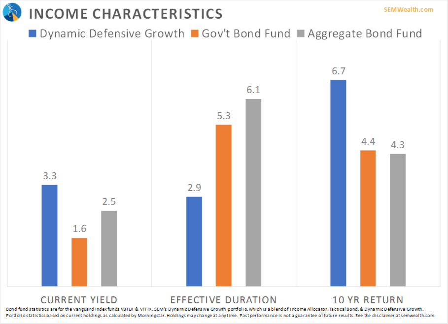 SEM’s income portfolios have a higher current yield, lower duration, & significantly better long-term returns.
