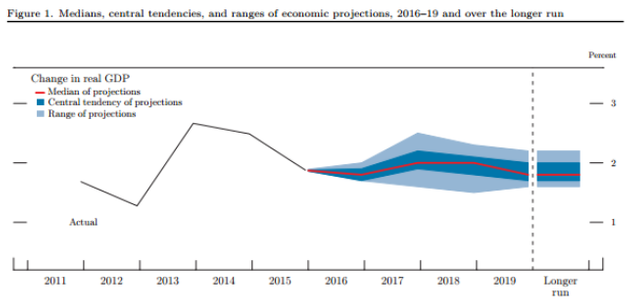What was more fascinating was the fact the Fed again LOWERED their forecast for the economy for both this year and over the long-run — now down to 1.8%.